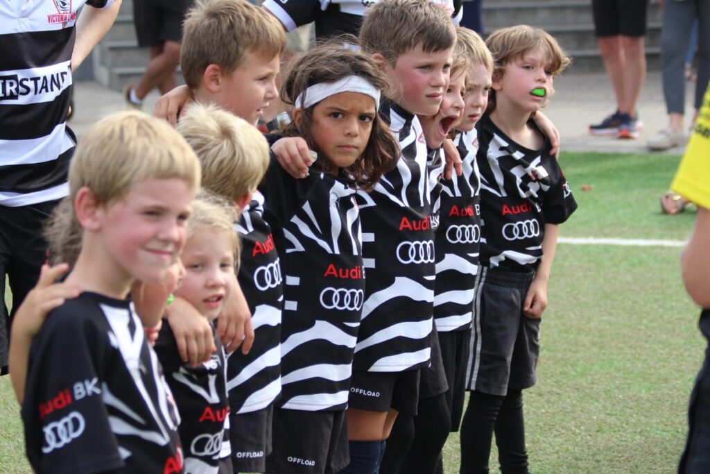 Vorab ist dabei schon erfreulich zu erwähnen, dass in jeder Altersklasse jeweils eine schwarz-weiß gestreifte Mannschaft von der Fösse gemeldet wurde und neben den Spielerinnen und Spielern und ihren Trainer*innen und Betreuer*innen auch die Eltern und Familienangehörigen dafür gesorgt haben, dass dieses Turnier zu einem großen Gemeinschaftsgefühl auf und neben dem Platz beiträgt. Nicht zuletzt bei der Siegerehrung am Sonntag konnte dieses auch mit beherzten „Let’s go Victoria, Let’s go!“- Gesängen nach außen transportiert werden. Danke euch allen!
